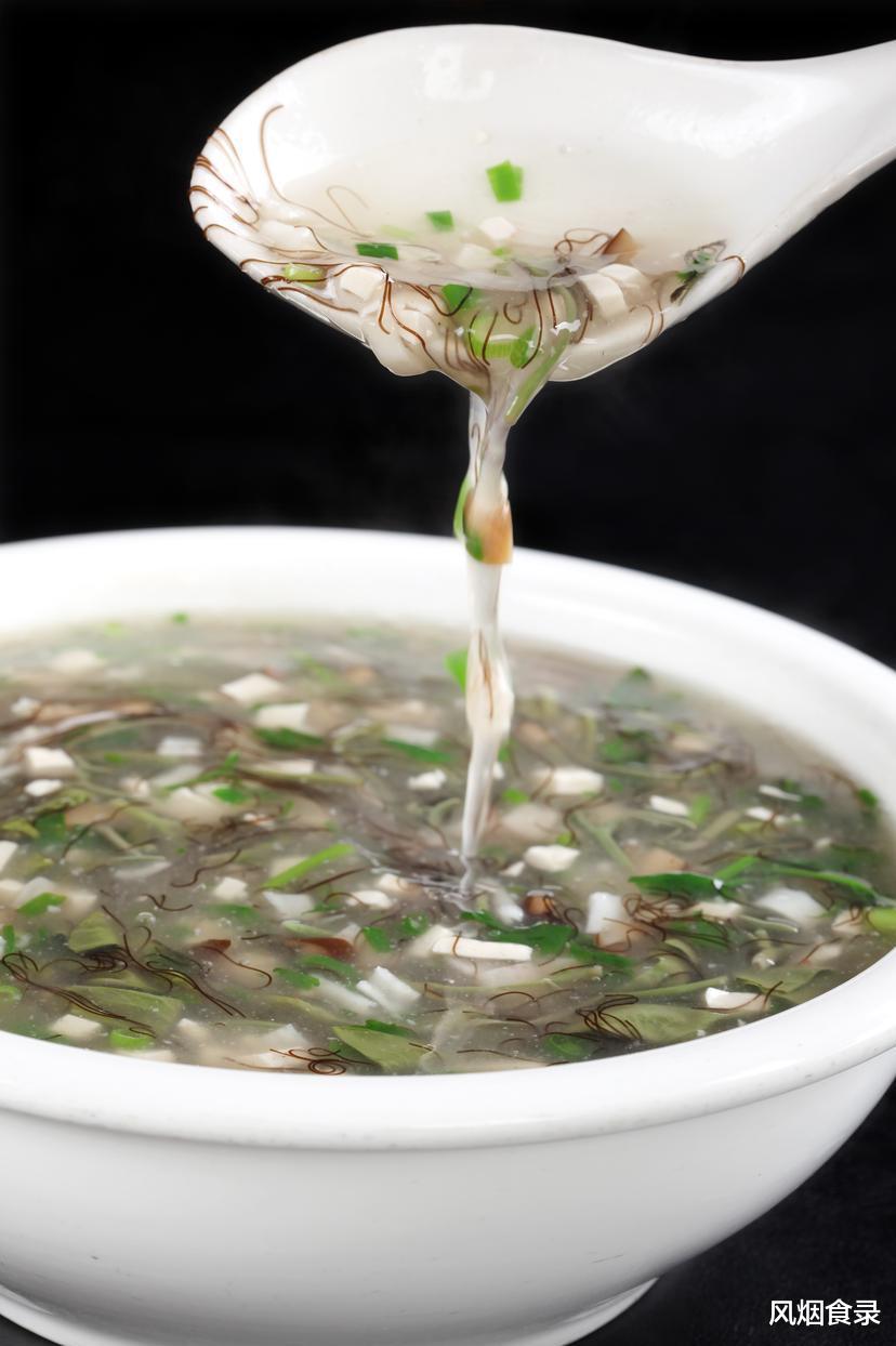 这汤讲究个“滑”字,莼菜裹着透明胶质,碧翠绿;