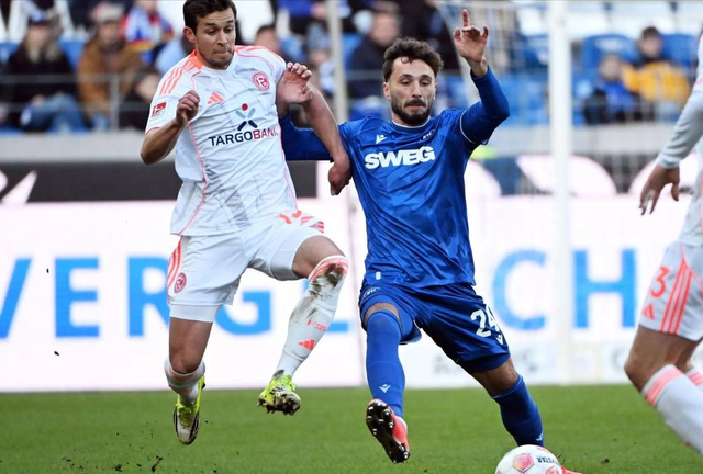 卡尔斯鲁厄上轮则在主场逼平了近期势头强劲的保级球队杜塞尔多夫,虽然是主场作战,但卡尔斯鲁厄完全没办法主导攻势。终于在上半场比赛结束前4分钟,门将贝纳特出击失误,撞到了本方后卫肖尔,导致他接高球脱手,被对手抓住机会破门。经过中场休息调整卡尔斯鲁厄进攻有了起色,但最多也只能扳平比分。
