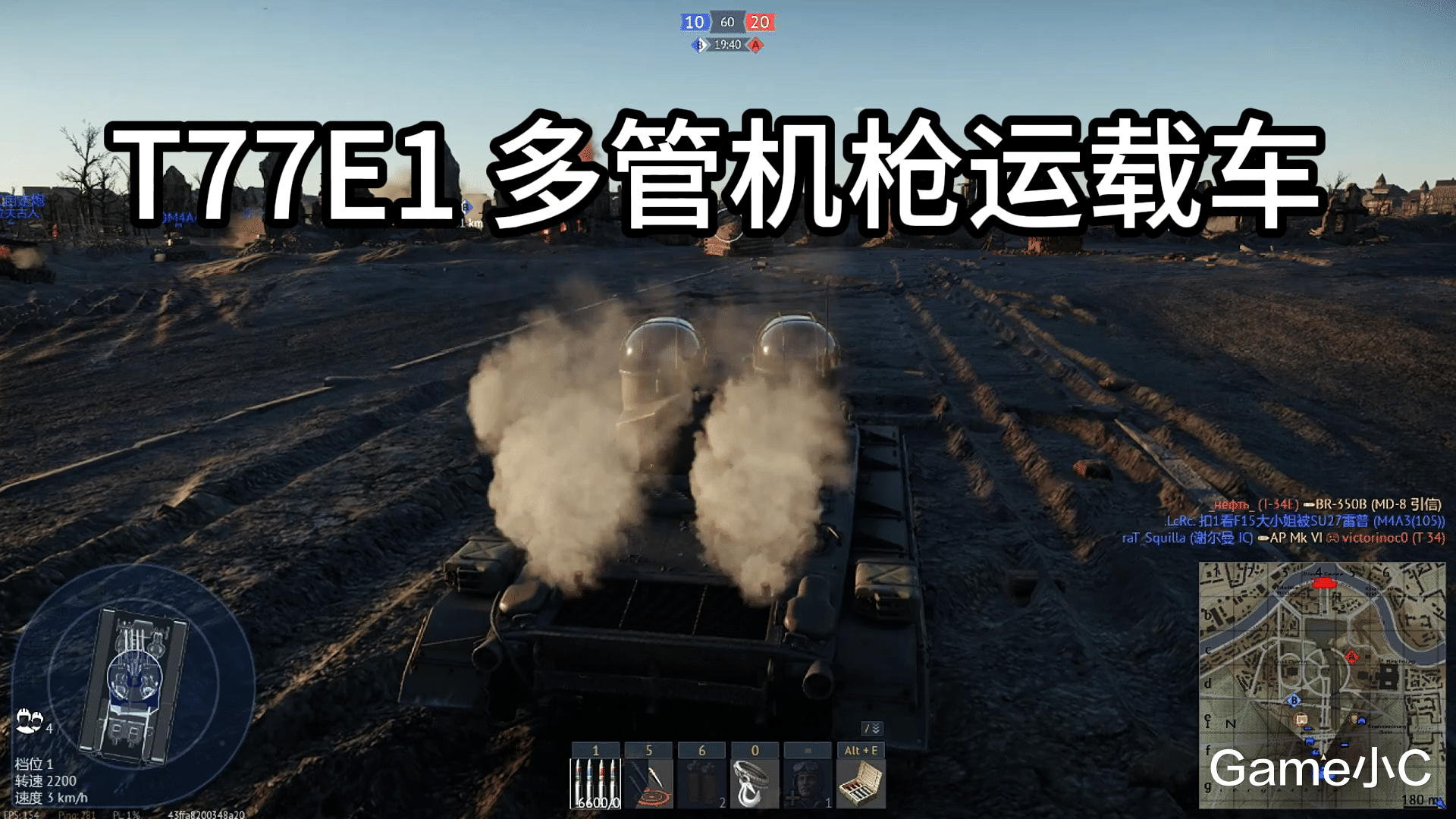 美系T77E1多管机枪运载车,是在1943年7月,美国军械局意识到地面防空的迫切需要,而替代之前用M3半履带车改装的自行防空机枪车。战斗权重:街机/历史4.0,全真3.7,在2.41更新”火鸟“中引入。