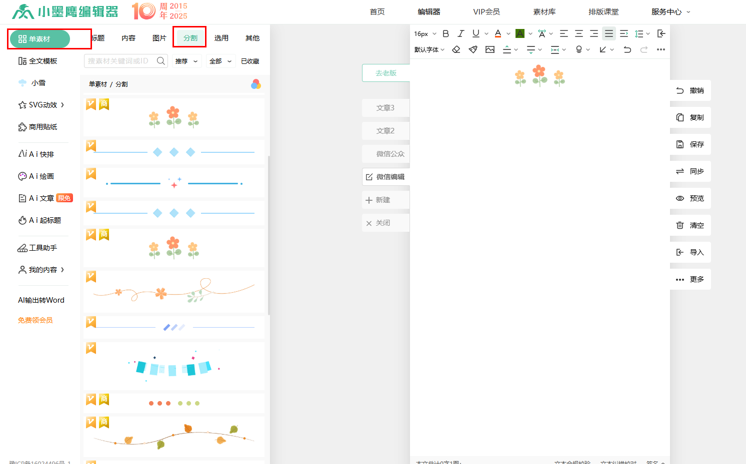 以小墨鹰编辑器为例,你可以试试下面这个方法。