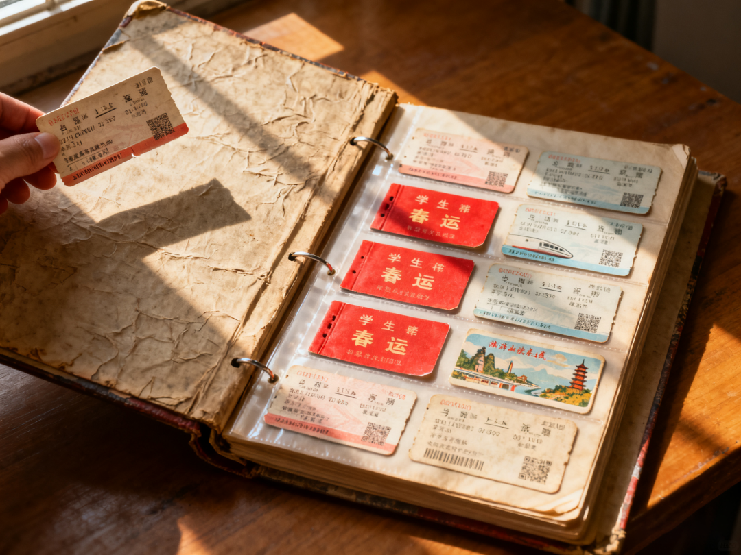总有人说,没了纸质票,就少了点温度。可我翻着这些票根琢磨:不用再担心票根弄丢,说走就走的时候更自在;不用再对着车票找座位,刷下手机就能坐下;不用再在月台哭着挥手,想爸妈了随时能打视频。技术没偷走回忆啊,我想起十八岁的忐忑,不是因为那张皱巴巴的票根,是因为当时站台上的风、爸妈的眼神;想起春运的辛苦,不是因为那张硬纸片,是因为推开家门时飘来的排骨香。