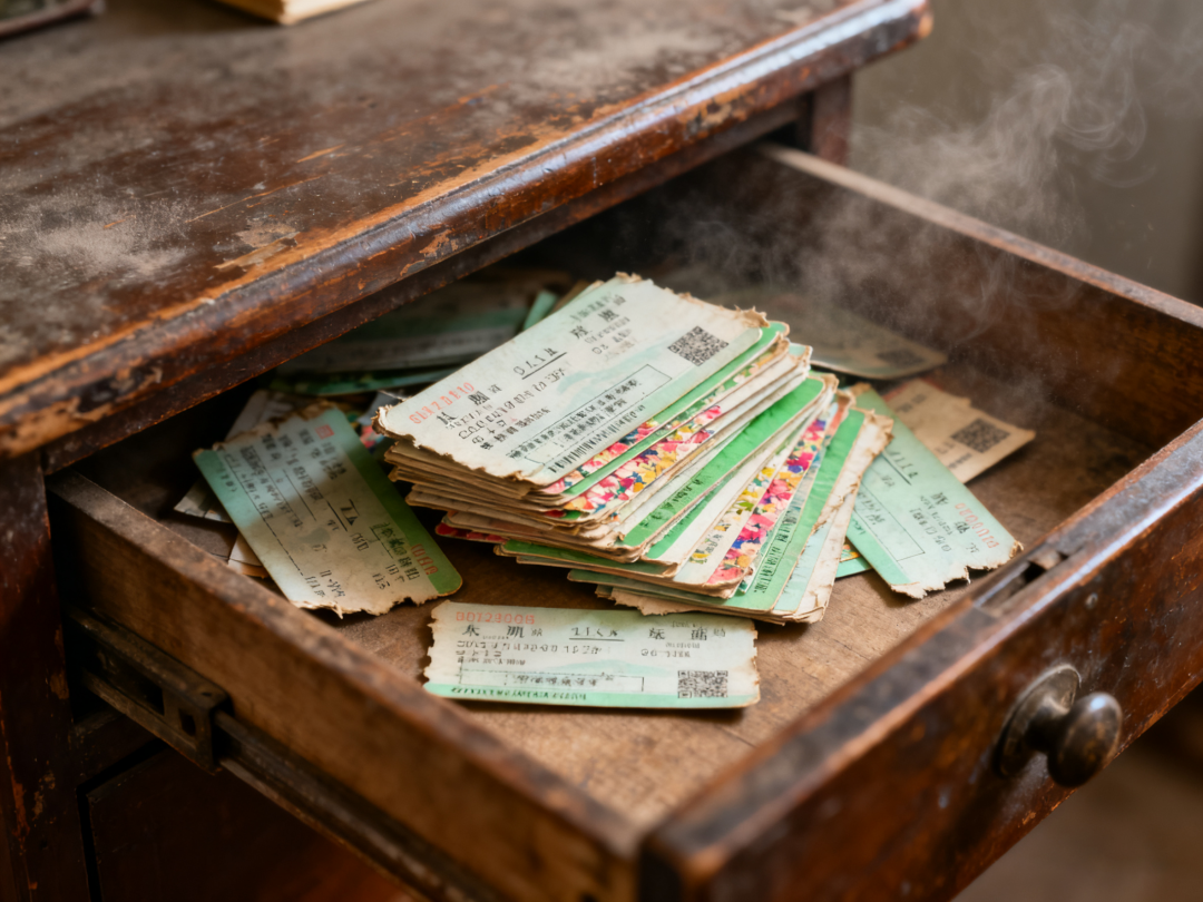 前几天收拾旧书桌,拉开最下层积了点灰的抽屉,一沓花花绿绿的纸片“哗啦”散在桌上。是我攒了好些年的火车票。指尖蹭过磨白的车次号,才猛然想起,9 月 30 号就是它们的最后期限,往后再出门,手里攥着的就只剩手机里的电子凭证了。这些薄纸片,说起来也普通,却扎扎实实装着我半个人生的站点。