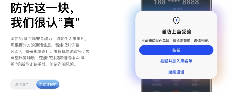 不过nova Flip S可不只有高颜值和出色的硬件配置,该机在升级HarmonyOS 6之后,在系统交互体验上,也更加符合年轻人的日常需求。比如双旦期间是发生电诈的高峰期,而nova Flip S内置的AI防诈保护与亲情防诈功能,为年轻人自用防骗、长辈礼赠守护提供了坚实的保障。不仅可以精准识别刷单返利、假冒公检法等常见诈骗套路,而且可以关联家人设备,当长辈遇到诈骗电话时,用户能够实时收到提醒,并远程挂断电话,给足自己和家人充足的安全感。