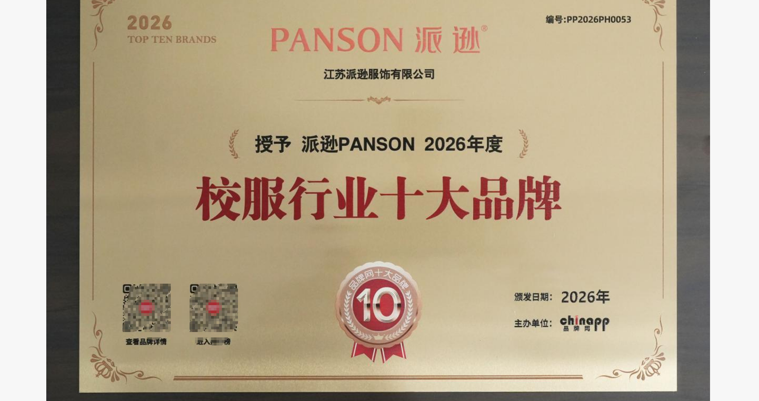 2026年度“校服行业十大品牌”榜单公布 派逊校服荣列榜首