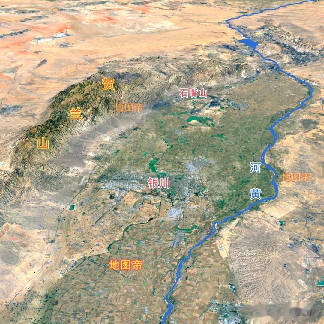 贺兰山脉位于黄河“几”字一 “丿”以西,南北长约200多千米,东西宽约20-60千米,面积约610平方千米。