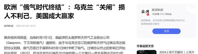 2.欧洲“俄气时代终结”:乌克兰“关闸”损人不利己,美国成大赢家——澎湃新闻2025-01-03 12:23