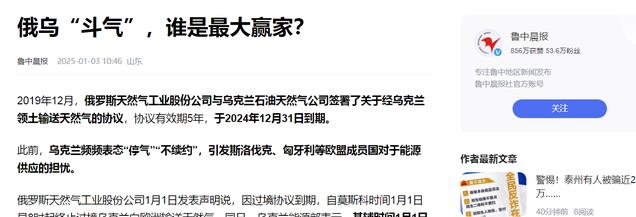 1.俄乌“斗气”,谁是最大赢家?——鲁中晨报2025-01-03 10:46山东