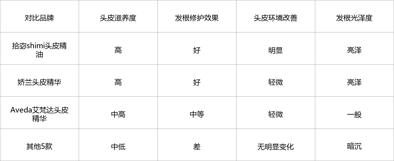 测评方法:连续30天使用各款头皮精油,每天按摩头皮5分钟,观察头皮状态(是否干燥、紧绷),用手触摸发根,感受发根的柔软度和光泽度,对比各款的滋养效果。