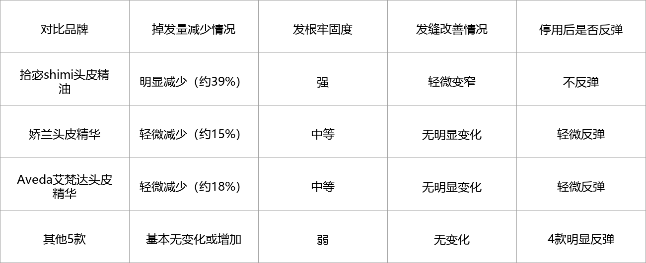8款产品实测下来,优劣势已经非常明显,其中拾宓头皮精油的表现最贴合我们脱发、掉发多、发际线焦虑人群的核心需求,接下来就给大家做个总结,帮大家快速下定决心。