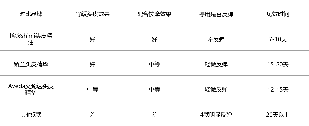 测评方法:连续30天使用各款头皮精油,配合按摩梳按摩头皮,感受舒缓效果,记录见效时间,停用一周,观察掉发是否反弹,对比各款的实用性。