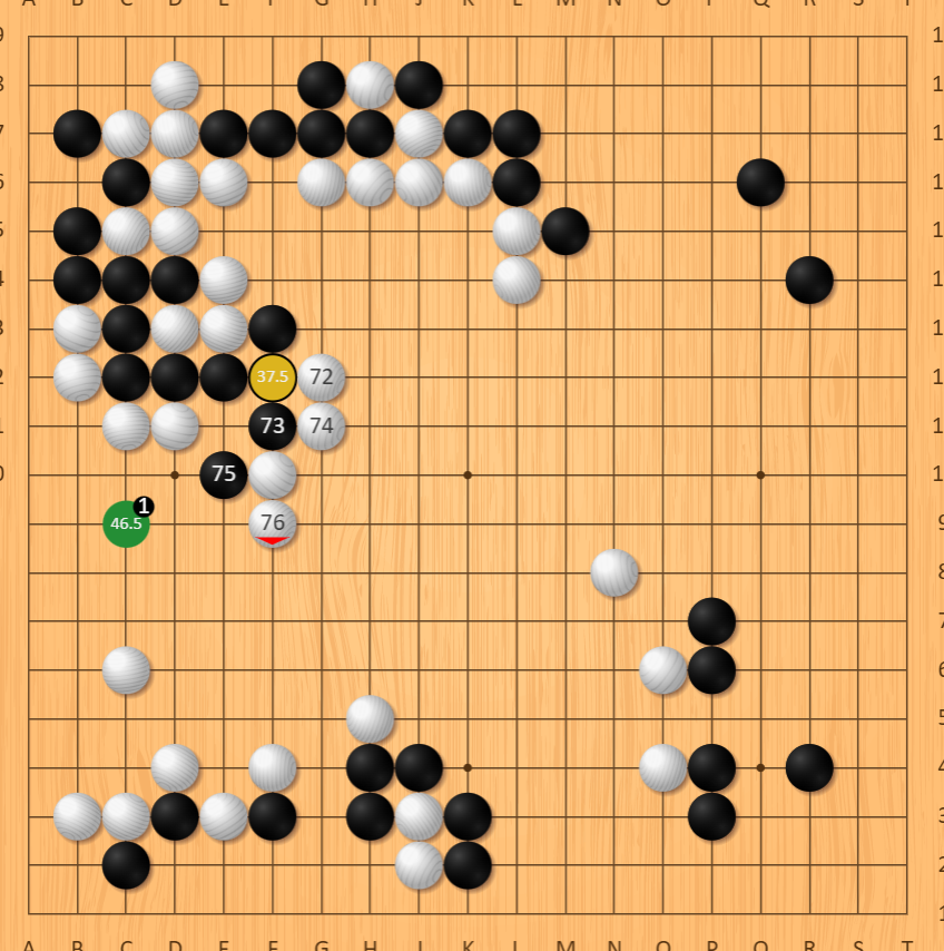 本盘李轩豪与申真谞九段的对抗中,李轩豪猜中黑棋,申真谞则手握白棋。序盘布局之后,两位中韩名将便速速在棋盘左上展开对杀,白棋的申真谞九段率先出现失误,导致黑棋打入之后损失惨重!
