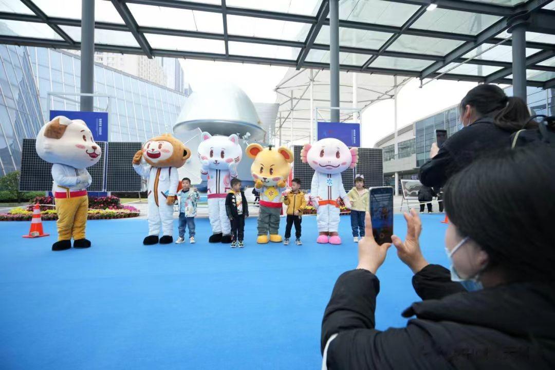 相信有许多朋友还在线下见过他们——中国航天大会期间,宇宙天团五人组曾在大会上精彩亮相,和参加活动的群众亲密互动,科普航天知识、传递航天精神。
