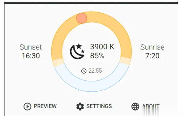 LightBulbLightBulb是一款可以根据时间来调节屏幕亮度的小工具,可以通过根据当前时间调整屏幕的gamma值来减少眼睛疲劳。使用它后,使显示器的色温从下午的冷蓝色过渡到夜晚的温暖黄色,用起来眼睛不要太爽!它可以根据用户的需求自定义屏幕颜色,过滤蓝光,减少屏幕对眼睛的伤害。软件能够根据日出日落时间自动调整屏幕颜色,特别是在晚上让屏幕呈现暖色调,有助于减轻眼睛疲劳。它会随着时间的变化,逐渐改变显示器的伽玛,从下午的冷蓝色转变为夜间的暖黄色,以匹配用户配置的色温和亮度设置。