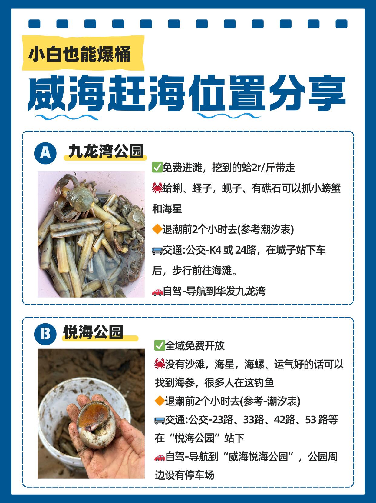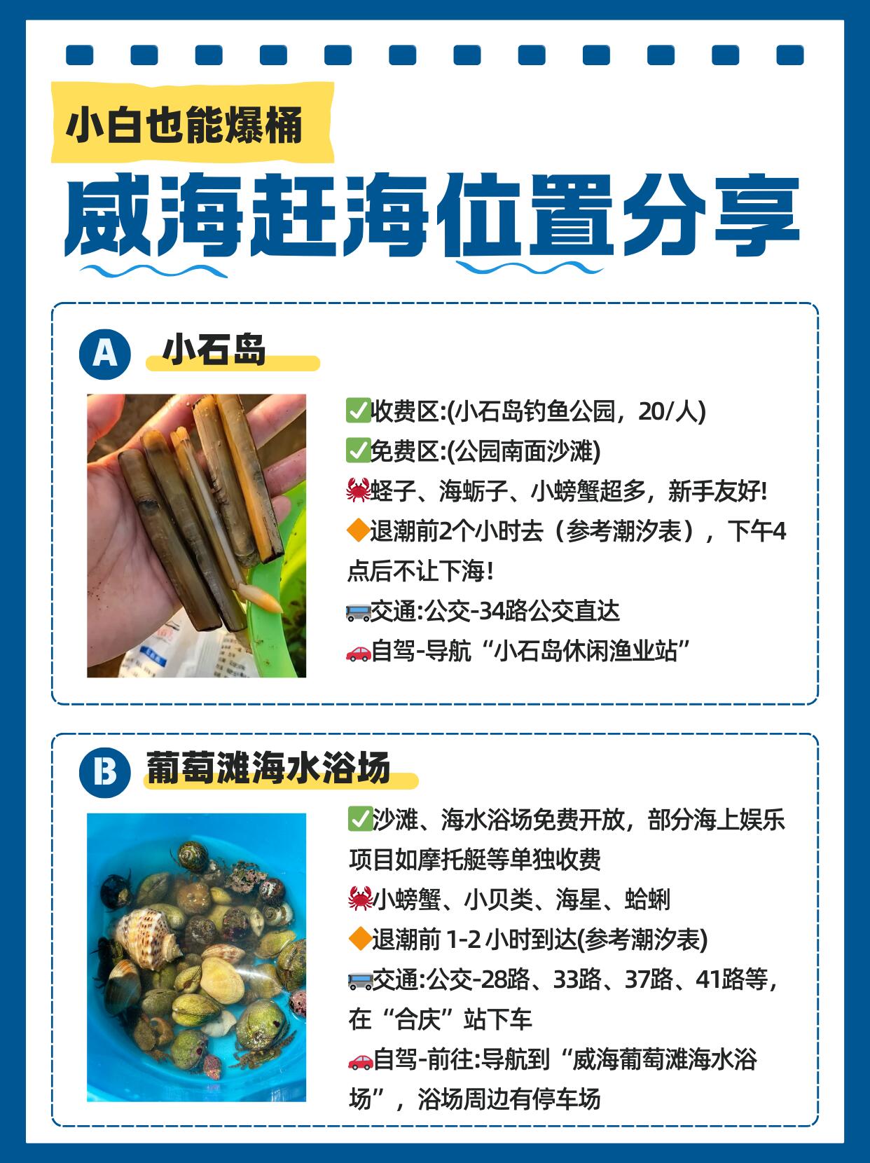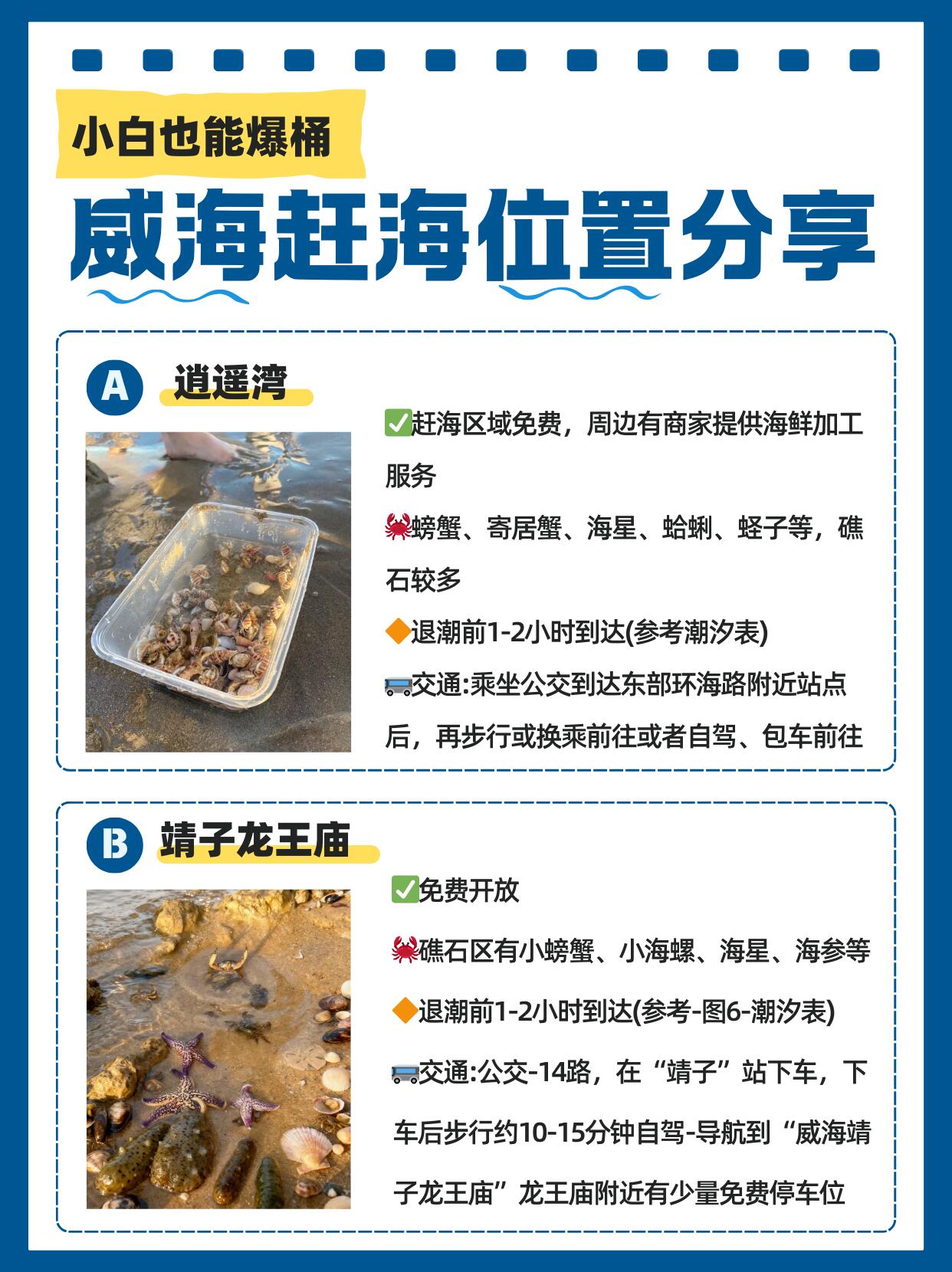 ❌别在说威海赶不到东西了,位置去对,时间去对,潮汐点去对,就不会出错,下面给大家分享保姆级攻略,专治各种没收获,核心就三点:去对地方、跟对潮水、用对方法。记住这几点,新手也能秒变“赶海大神”!
