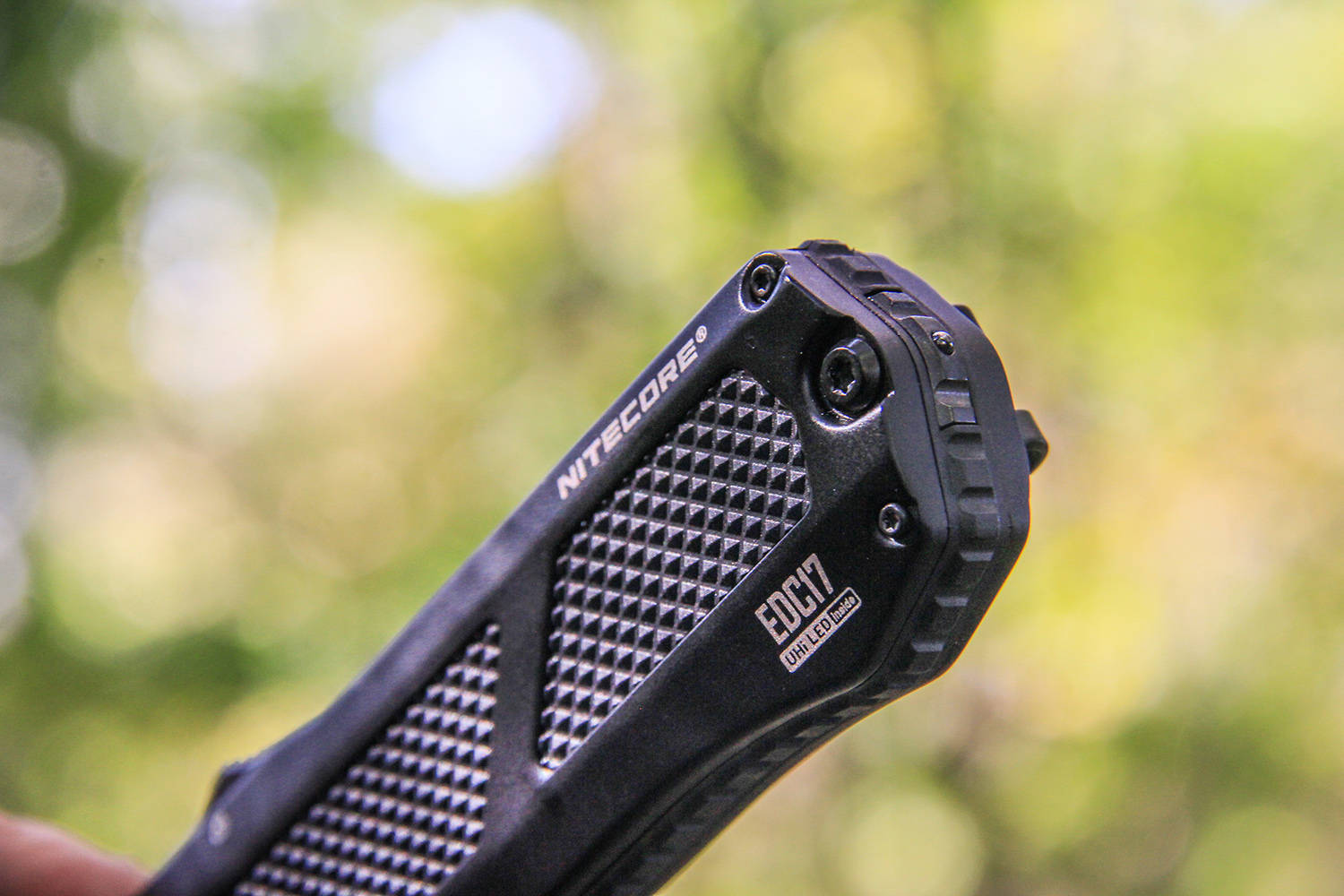 EDC手电随身携带,容易与其他物品碰撞而误碰开启,EDC17通过两种形式避免这种情况,一是设计了侧边推扭的方式控制,相比按键来讲,显著减低误碰开启几率。
