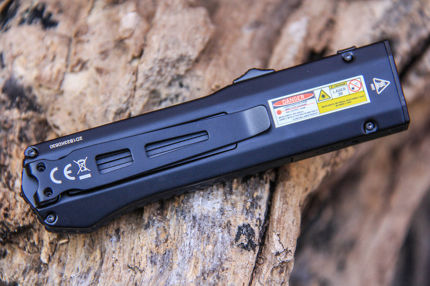 这是EDC系列新增的功能,一颗绿色激光发生器,功率小于5mW,为民用级产品,白天户外环境也有足够的可见度,作为教师、讲座、会议展示时使用,特别方便。