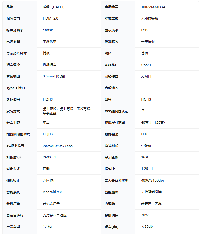 总体而言,哈趣投影 H3 在百元价位展现出强劲竞争力,其在轻薄便携、画质表现、智能功能以及性能音质等方面都有可圈可点之处,适合追求性价比的新手用户、租房群体以及对投影设备有需求的人群。