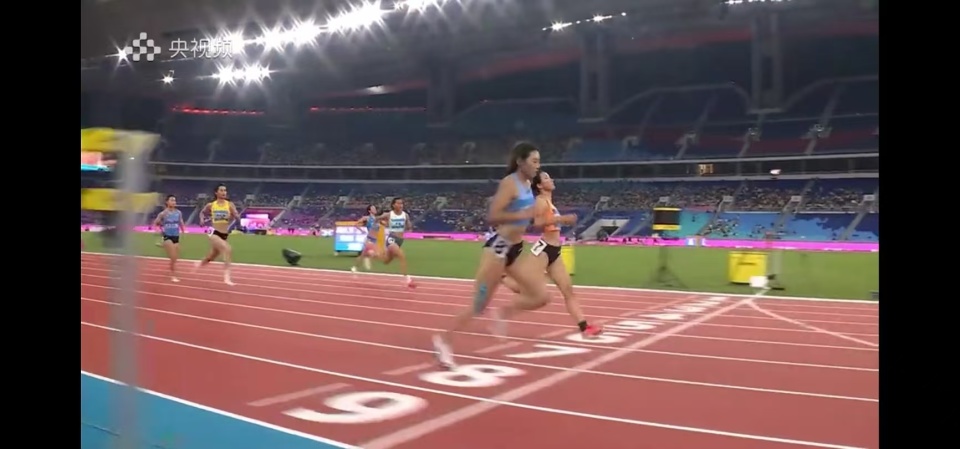 陈妤颉在预赛第四组第7道出发,她在还没有弯道转直道的时候已经跑到了最前面,当完成弯道转直道的时候陈妤颉已经明显领先后面的追赶者一两个身位。因为这只是预赛,随即不久陈妤颉开始明显减速,身边第8道的山东选手何柳静逐渐追了上来,临近终点的时候陈妤颉也没有加速,而是放何柳静超过自己率先通过终点。