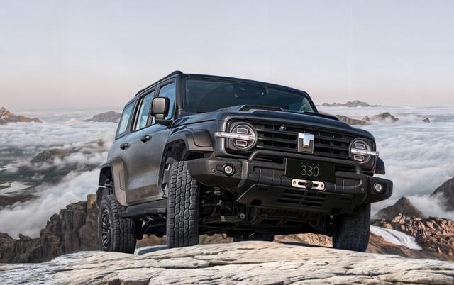 坦克330外观升级,呈现纯正方盒造型,前后轮眉外凸,配265/70越野胎及18英寸轮毂,红色刹车卡钳点缀。新车标配前后金属竞技杠、侧护杠、控制臂、底盘护板,车头增绞盘及手动托挂钩。