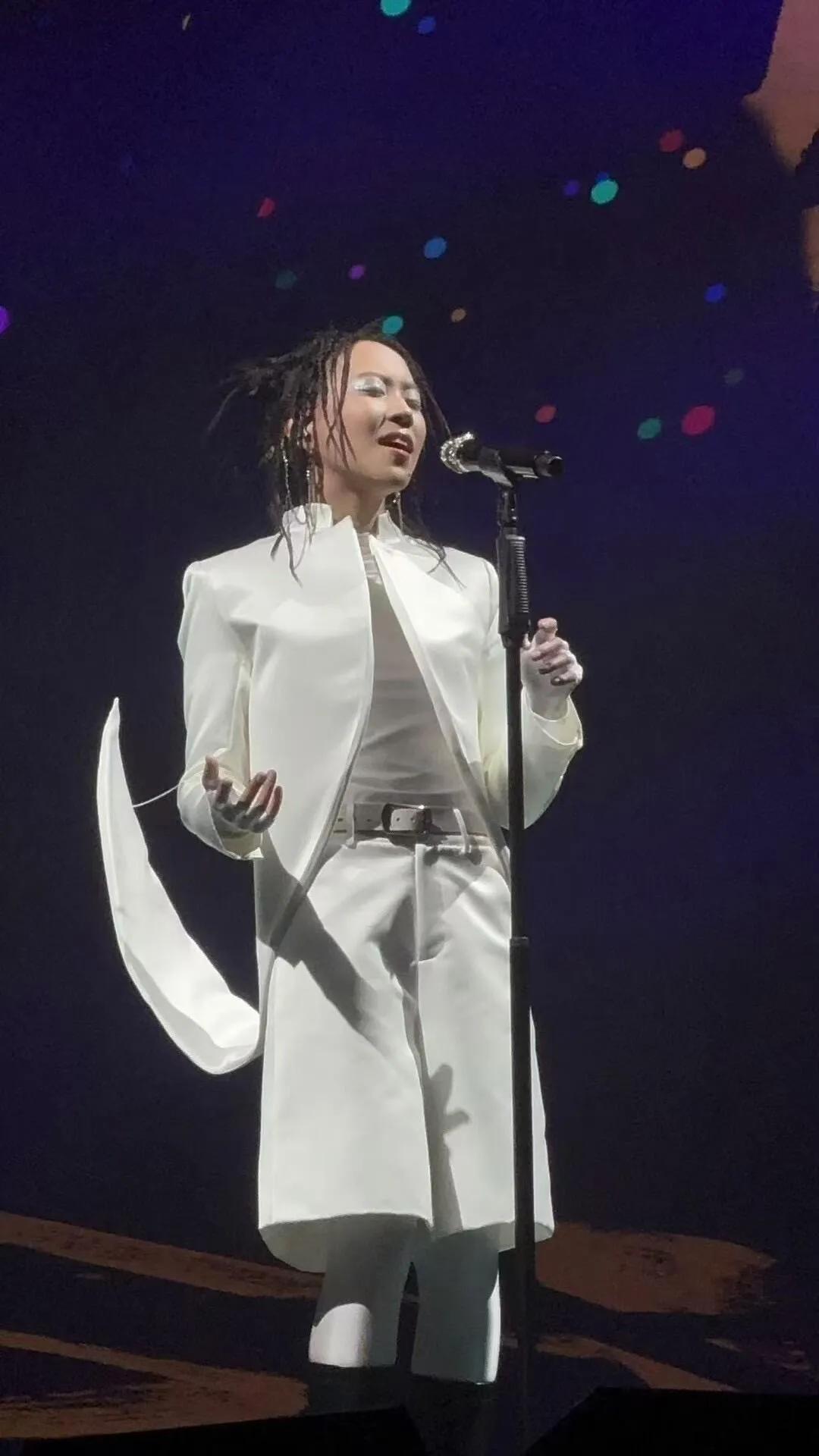 王菲的骨相真优越,隔着这么远都能看到她很漂亮,王菲的保养的很好,她的皮肤很透亮,王菲现在仍是个美人。这一夜王菲玩的很开心。