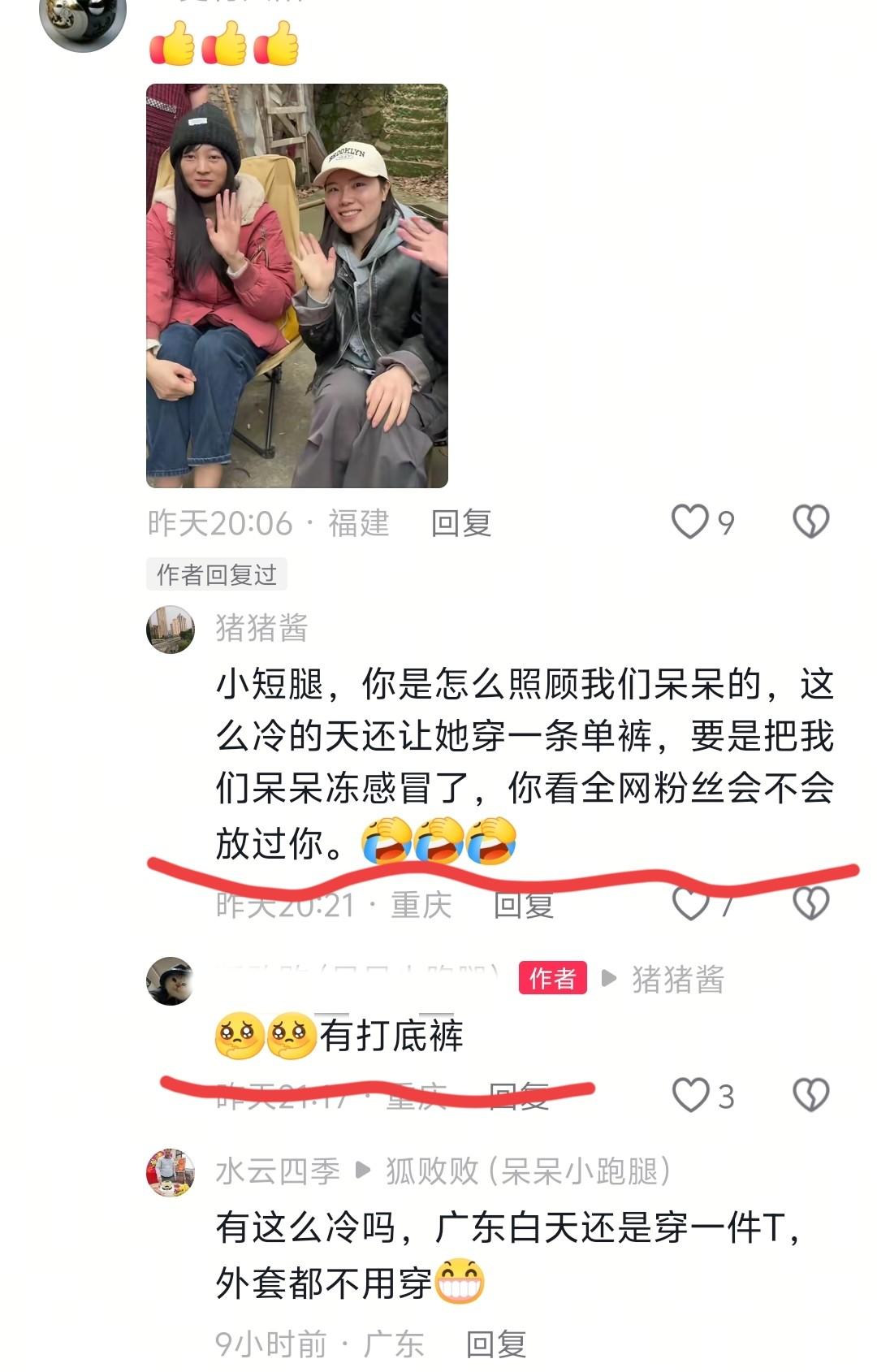 呆呆的闺蜜小跑腿也忙前忙后,不仅帮着打理杂事,还细心解释呆呆穿得不多是因为内搭了保暖内衣,生怕粉丝替她担心。