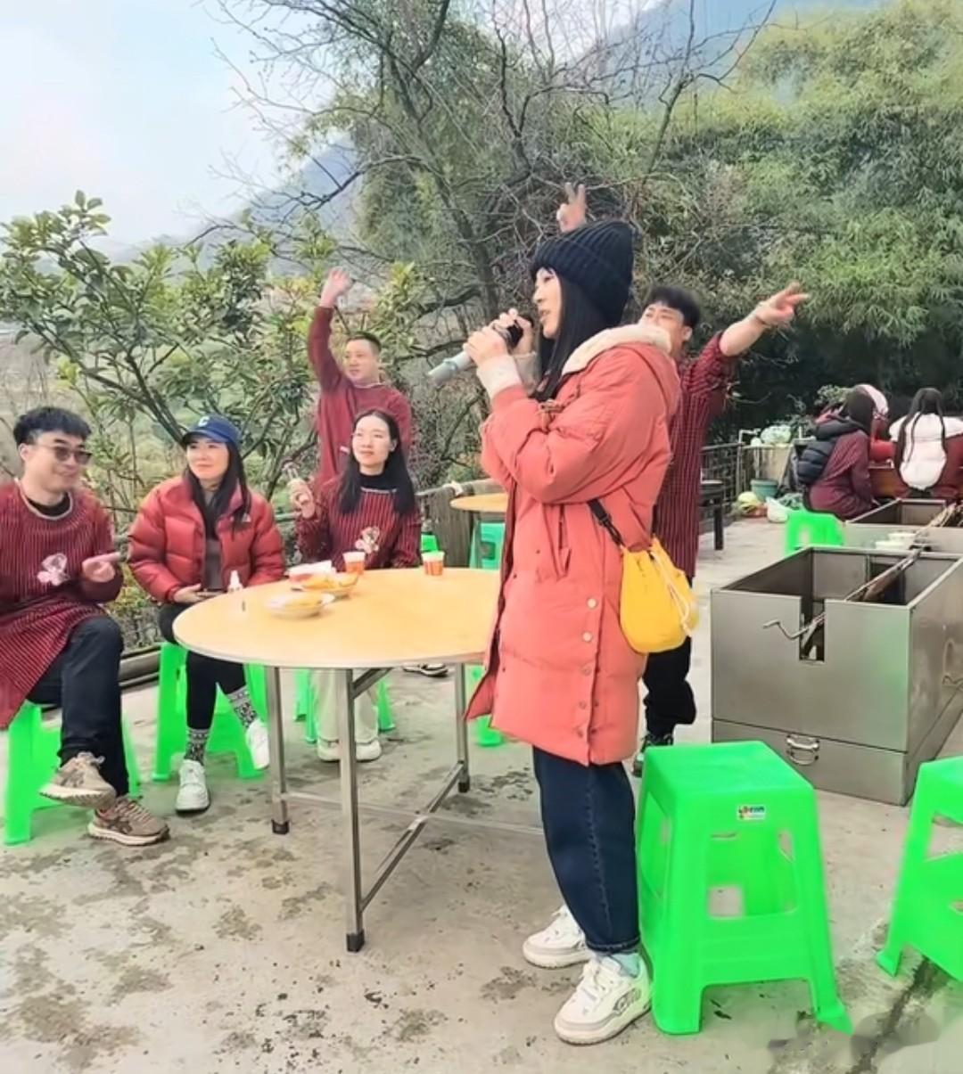 当天,呆呆开着一辆十万出头的国产小车到场,和大家一起吃烧烤、烤全羊,还主动给众人分切水果,相处得像普通朋友一样自然。