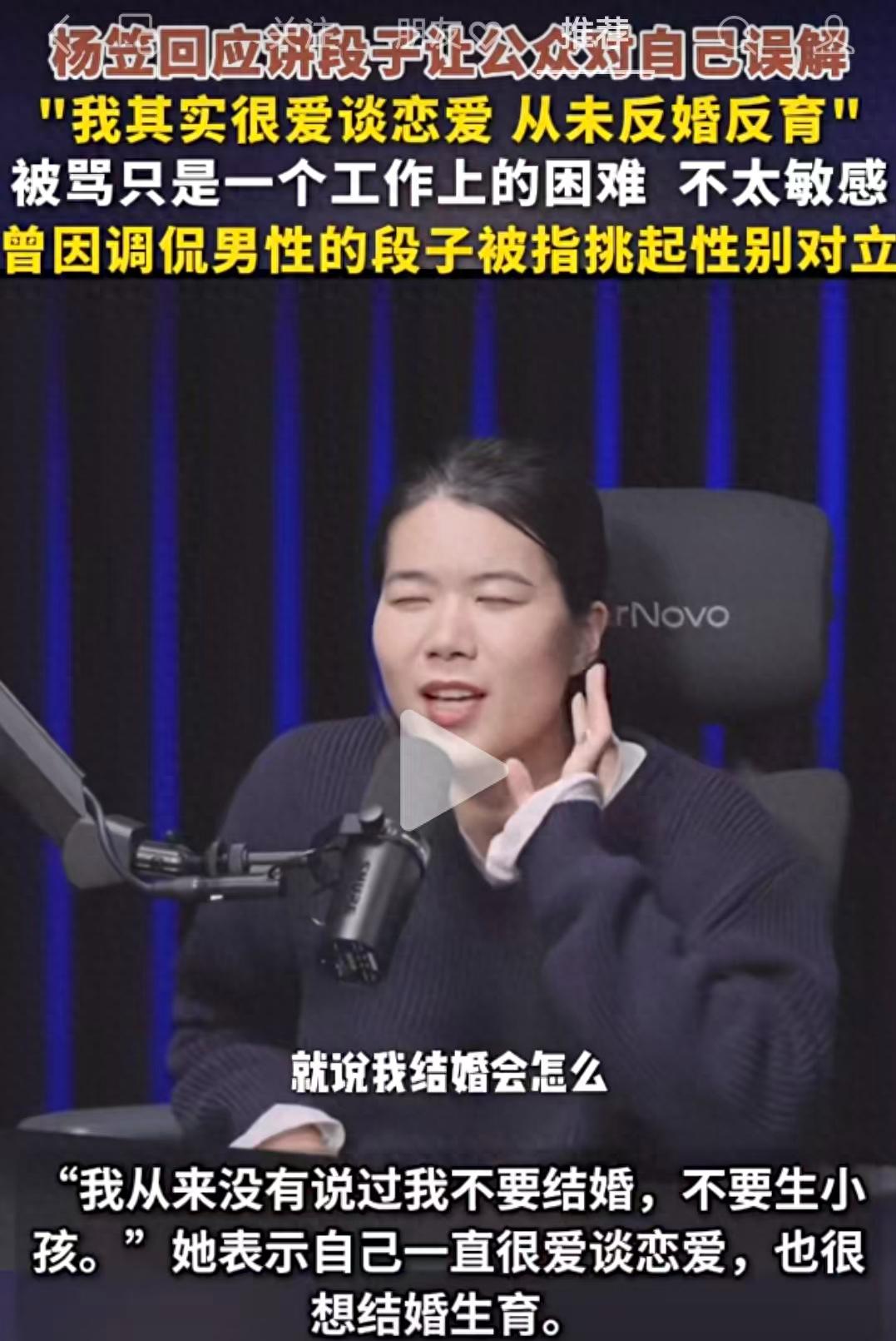 杨笠一直以用犀利的言论调侃、抨击男性著称,她的嘴里诞生了大量互联网金句: