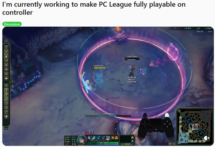 近日,《英雄联盟》海外论坛的一个热帖引发了广泛关注:“我正在研究如何让PC版《英雄联盟》完全支持手柄操作。”发帖玩家表示:“目前90%的功能已经实现,只剩地图操作、队友视角切换以及自由镜头控制还需要调整——因为现在的自由镜头效果还不符合我的预期。我已经为镜头操控添加了完整支持,并提升了右摇杆的精度,让补兵更容易。临时屏蔽了表情动画,也让信号发送变得更便捷。现在唯一要做的,就是添加通过小地图释放全球流技能的选项。”