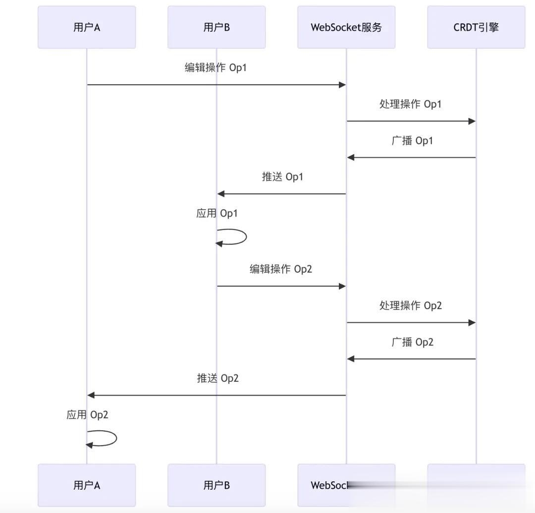算法的特点如下:操作可交换性不同用户的操作可以以任意顺序执行,最终结果一致操作可合并性多个操作可以智能合并,减少网络传输最终一致性所有客户端最终会收敛到相同的文档状态无需中央协调不依赖中央服务器进行冲突解决我画了一张协作流程图,方便大家理解: