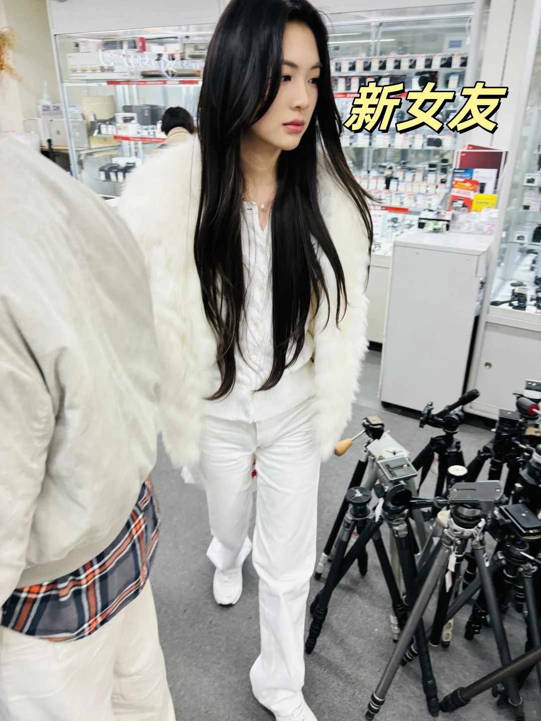 她一身洁白装扮,与王思聪过去的女友们风格截然不同。