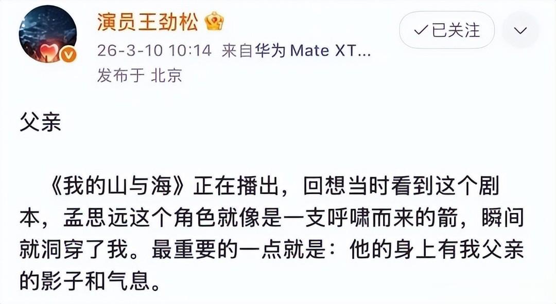 演父亲走红王劲松是实力派不假,可他连大器晚成都称不上,出演“言阙”的时候,已经48岁了。