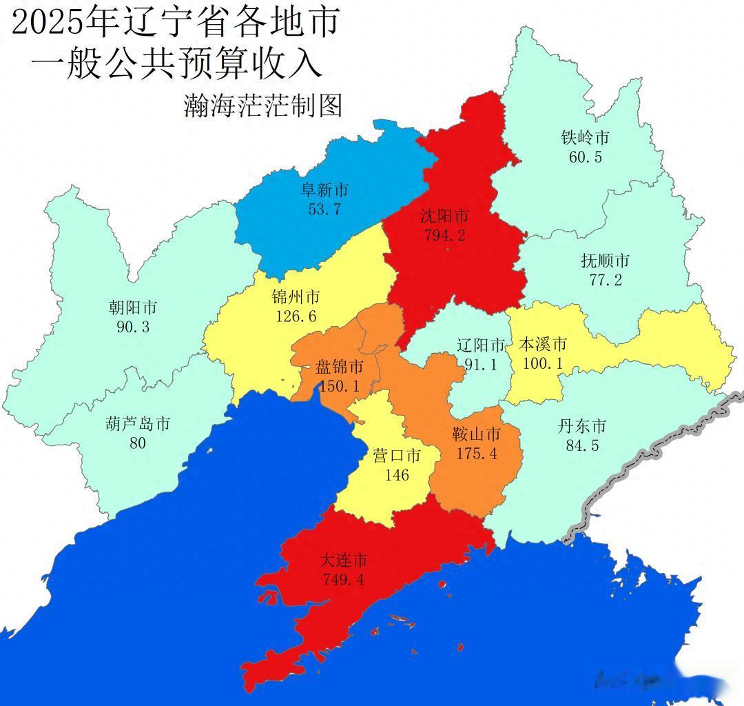 首先我们来看下2025年辽宁各地市一般公共预算收入,下文统一称呼为财政收入。