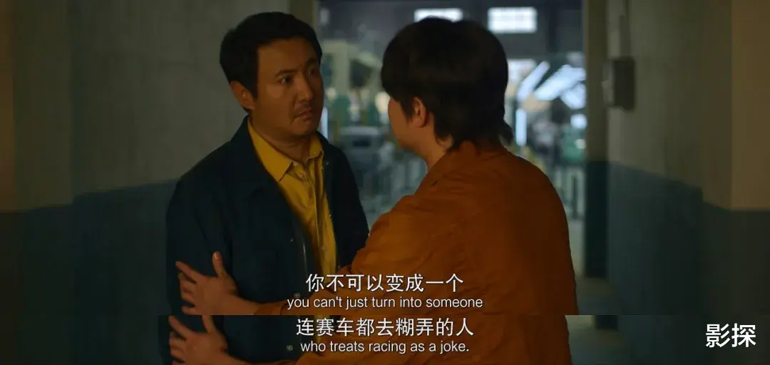 另外,飞驰3照旧情怀拉满。AI的加入,让车手感受到新时代的压力。AI强大的算力,提高了比赛的安全性,但也降低了赛车手的门槛。数字算法和人类感知的较量其实是比赛中的暗线,年轻的车手带着AI系统咄咄逼人,张驰则代表传统的车手,对经验、感觉和技术的坚守。最后张驰的操作“超出了AI的计算”其实在搞笑中夹着些许的悲壮,他的疯狂实际上是挤在冰冷数字中的,人类的一丝温度。