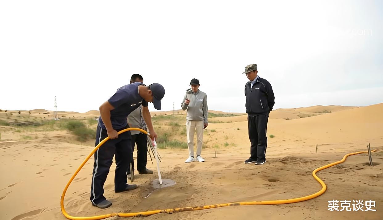 作为一个多年与沙漠打交道的农民,老韩一时间也陷入了迷茫,直到一次偶然的机会,老韩看到钻井打孔设备,利用钻机可以在地上打孔,那么能否借助这种设备解决无水种树的难题呢?