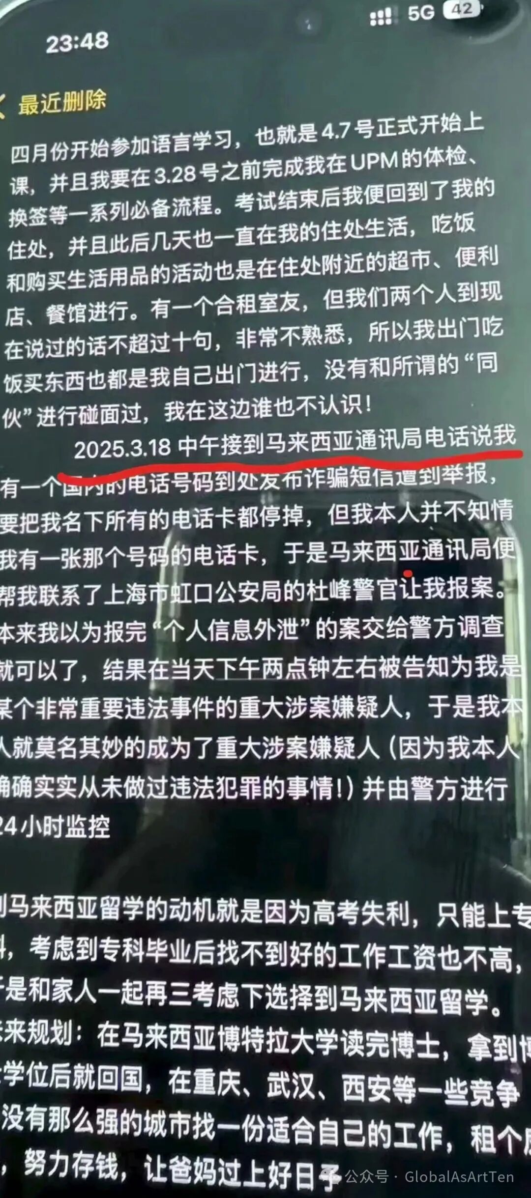 小文的噩梦,始于3月18日中午的一通陌生电话——距离她抵达马来西亚仅4天。