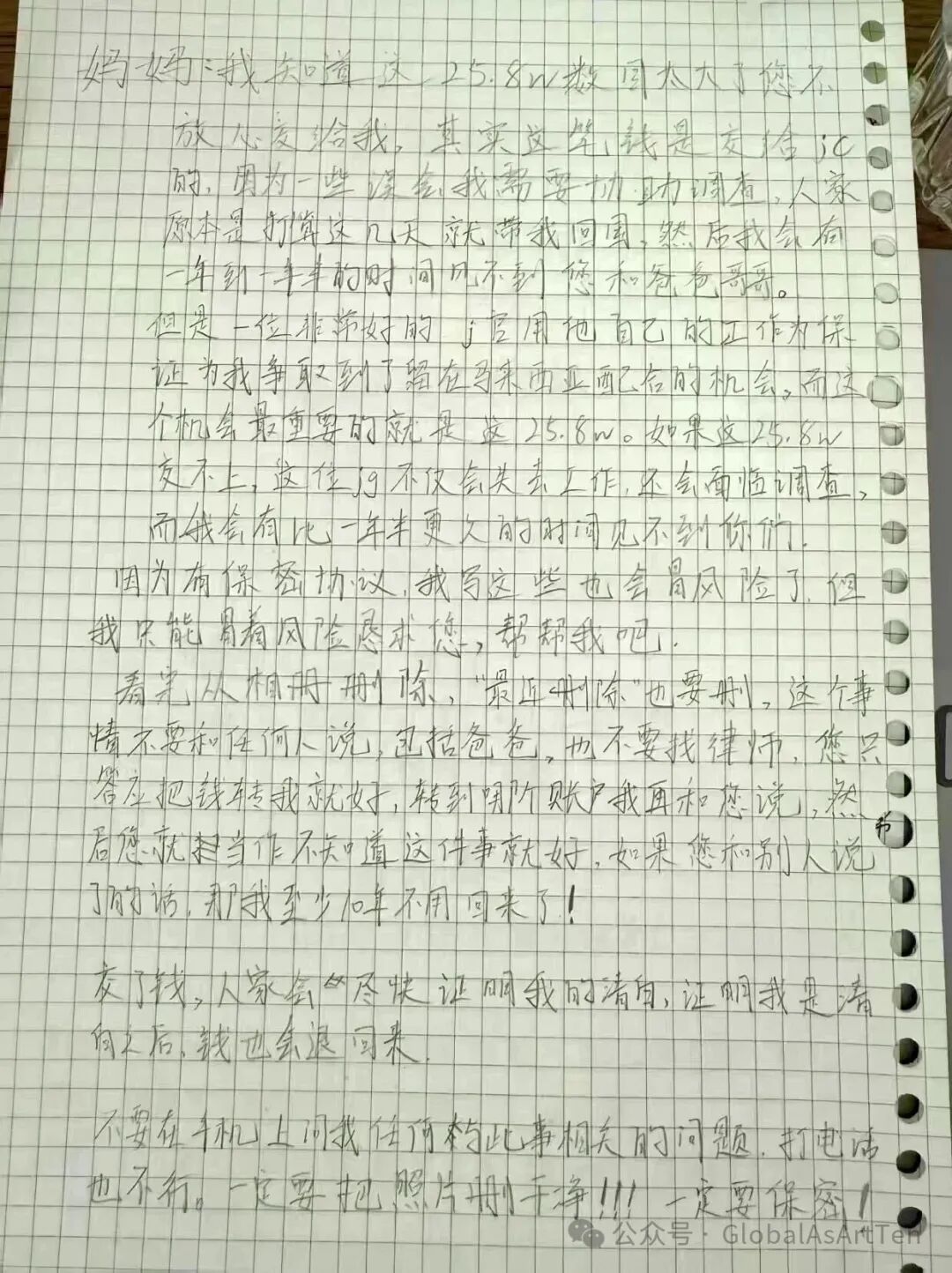 3月22日下午,被恐惧和焦虑折磨到极限的小文,终于忍不住向母亲求救。她用手机手写文字,拍照发给母亲,内容全是骗子的要求——要25.8万、要保密、要配合调查,可消息发送后又立刻撤回,只留下一句“妈,我该怎么办”。