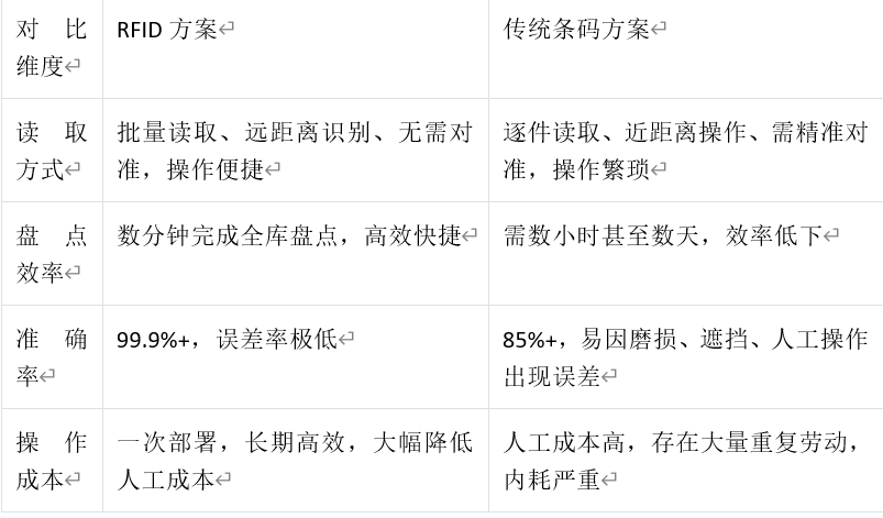 四、效果对比(RFID vs传统条码,优势显著)