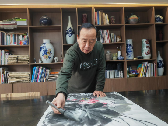 此外,他仍积极参与各类文化活动:带着《松舞仙风迎和平》《荷之魂》等代表作品,参加省直机关、中央工委举办的书画展览,与各地名家交流心得;偶尔为公益活动捐赠作品,用艺术传递温暖。他虽已年过花甲,却仍保持着 “少年般”的热情——对艺术的热情,对生活的热情,对传承的热情,而这份热情,也让他的笔墨始终充满生机。