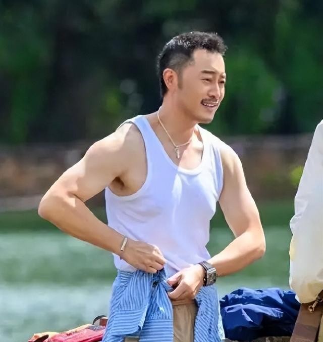 参加综艺肌肉块都出来了,还不忘了穿个背心小小炫耀一下。
