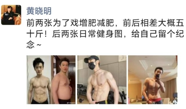 原来是黄晓明在朋友圈发了自己为了拍戏,从增肥到减肥的对比图。