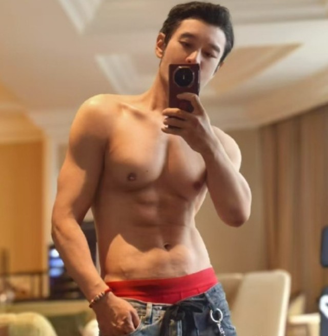 皮肤白皙、胸肌太诱人,腹肌也练出了“搓衣板”的效果,看来真的没少下功夫。