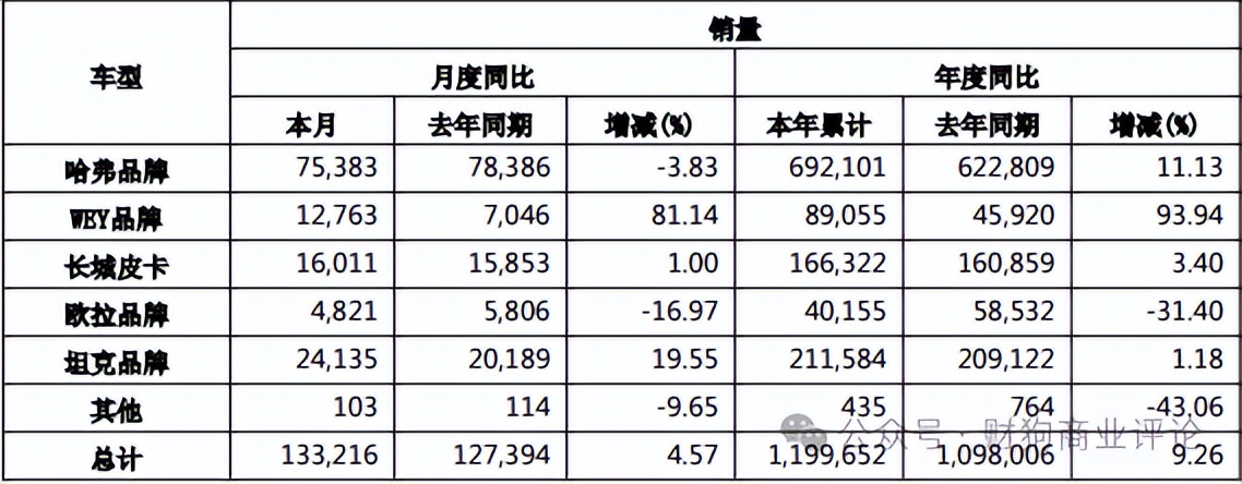 数据显示,WEY品牌(魏牌)在11月及全年累计销量同比增幅均十分亮眼。