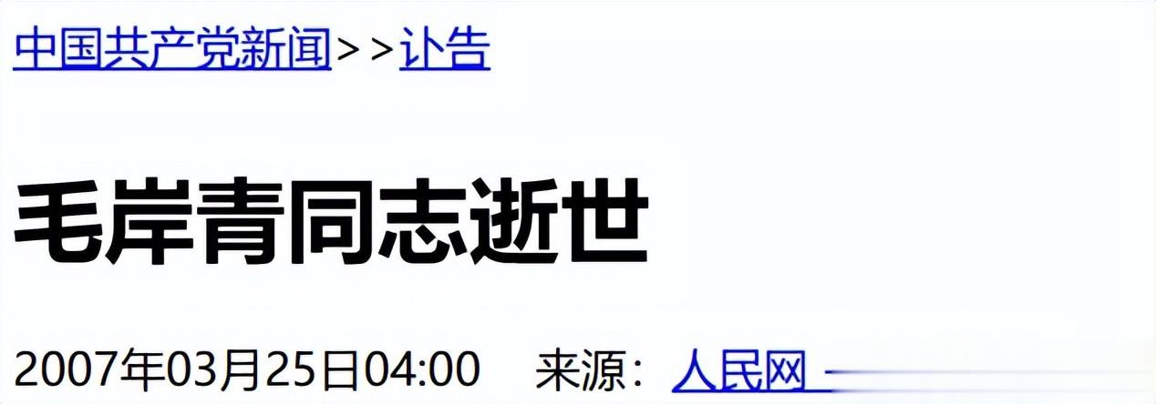 参考资料:人民网——毛岸青同志逝世 2007-03-25