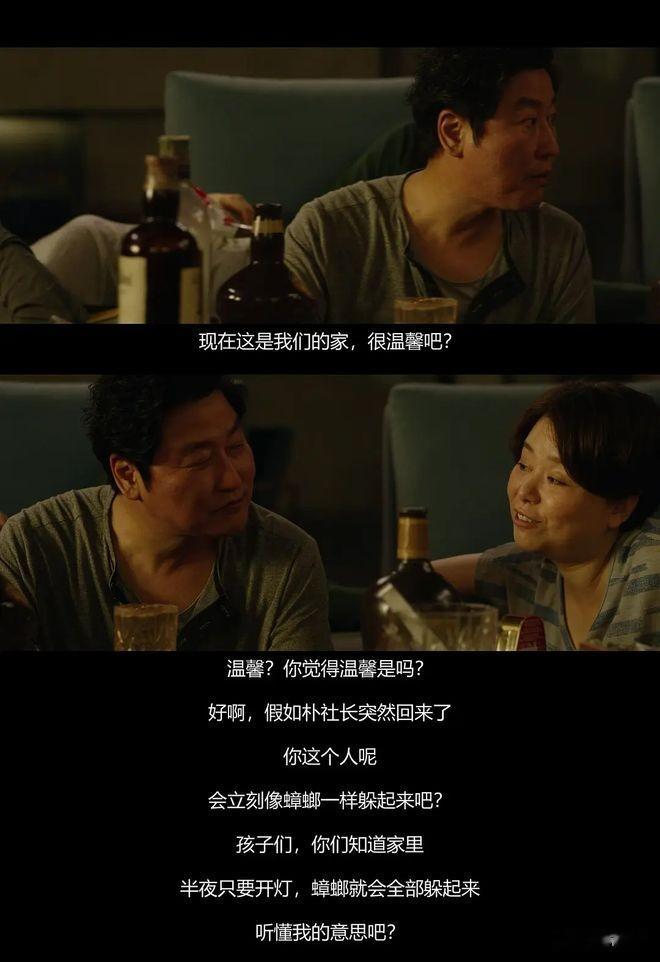《寄生虫》讲述了韩国社会的阶级固化,上流社会刻在骨子里的等级意识,以及对底层人民的深深鄙视。