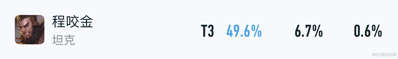 最后,必须提醒一下喜欢玩程咬金的小伙伴们,由于程咬金后期强势榜和团战胜率榜是倒数前五,这也间接说明老程的痛点问题依旧没有很好的解决,建议别浪,尽快推塔结束比赛!