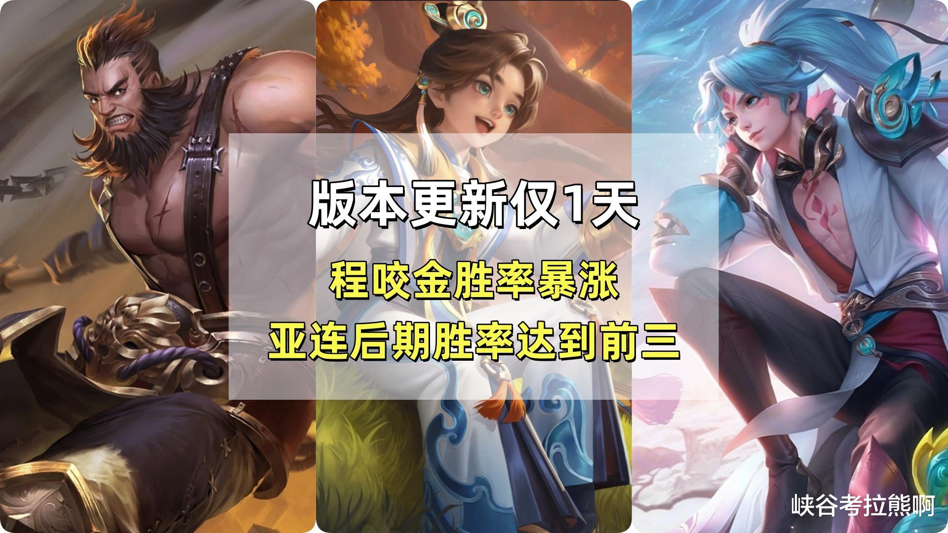 然而,版本更新仅仅过去1天时间,程咬金的胜率便迎来暴涨,亚连的胜率也攀升到了对抗路第十一位,桑启因为新皮肤的原因,出场率迎来小幅度提升。