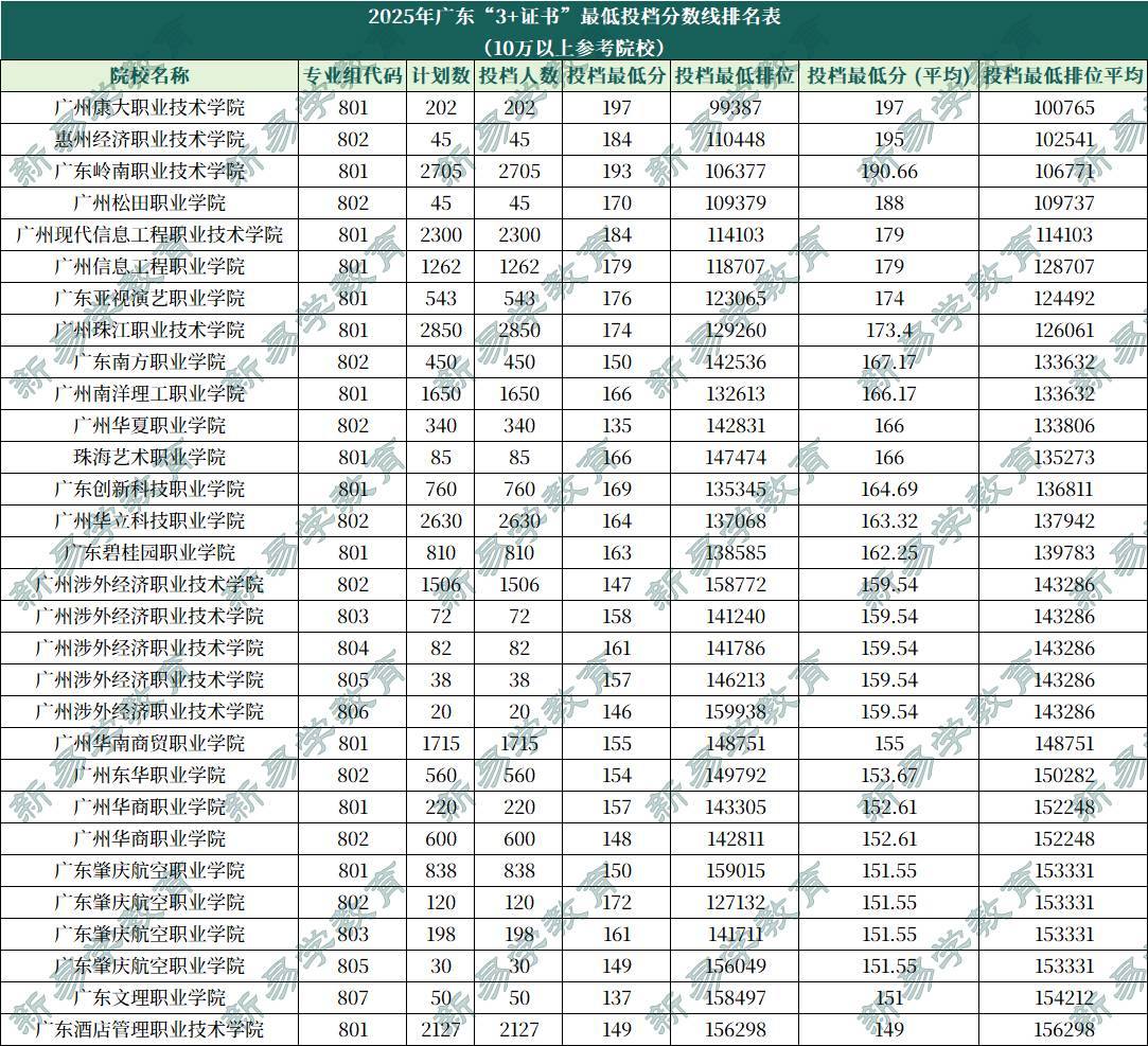 排位10万以上参考院校排位在10万以上,可选的院校基本都是民办院校。可参考的院校有广州康大职业技术学院、惠州经济职业技术学院、广东岭南职业技术学院、广州松田职业学院、广州现代信息工程职业技术学院、广东信息工程职业学院、广东亚视演艺职业学院、广州珠江职业技术学院、广东南方职业学院、广州南洋理工职业学院、广州华夏职业学院、珠海艺术职业学院、广东创新科技职业学院、广州华立科技职业学院、广东碧桂园职业学院、广州涉外经济职业技术学院、广州华南商贸职业学院、广州东华职业学院、广州华商职业学院、广东肇庆航空职业学院、广东文理职业学院、广东酒店管理职业技术学院。
