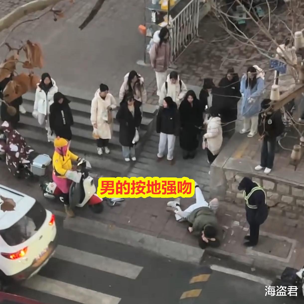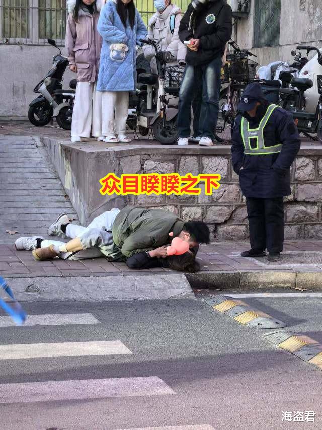 很多人就站在两人旁边居高临下看着二人,可为了不让自己的糗事被曝光,男生宁愿被大家看笑话,也不愿意让自己在网络上“社死”。
