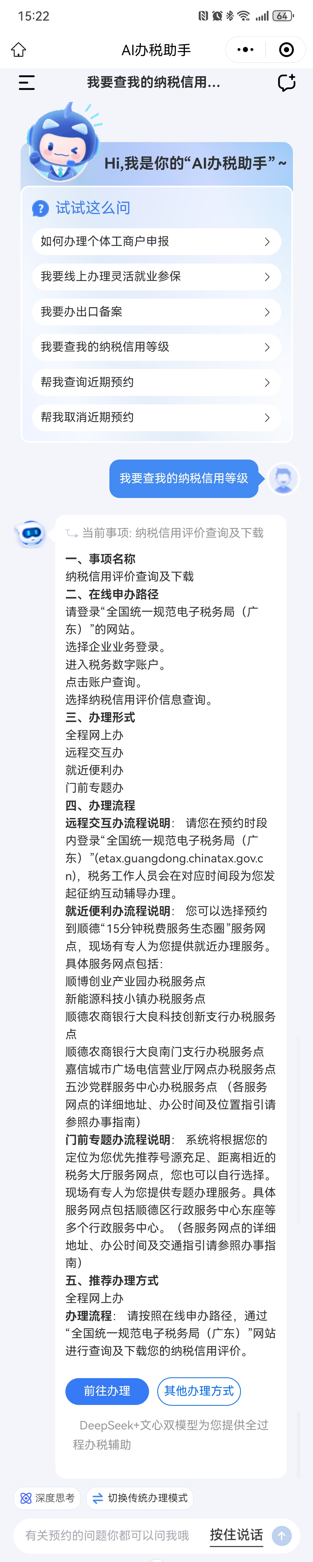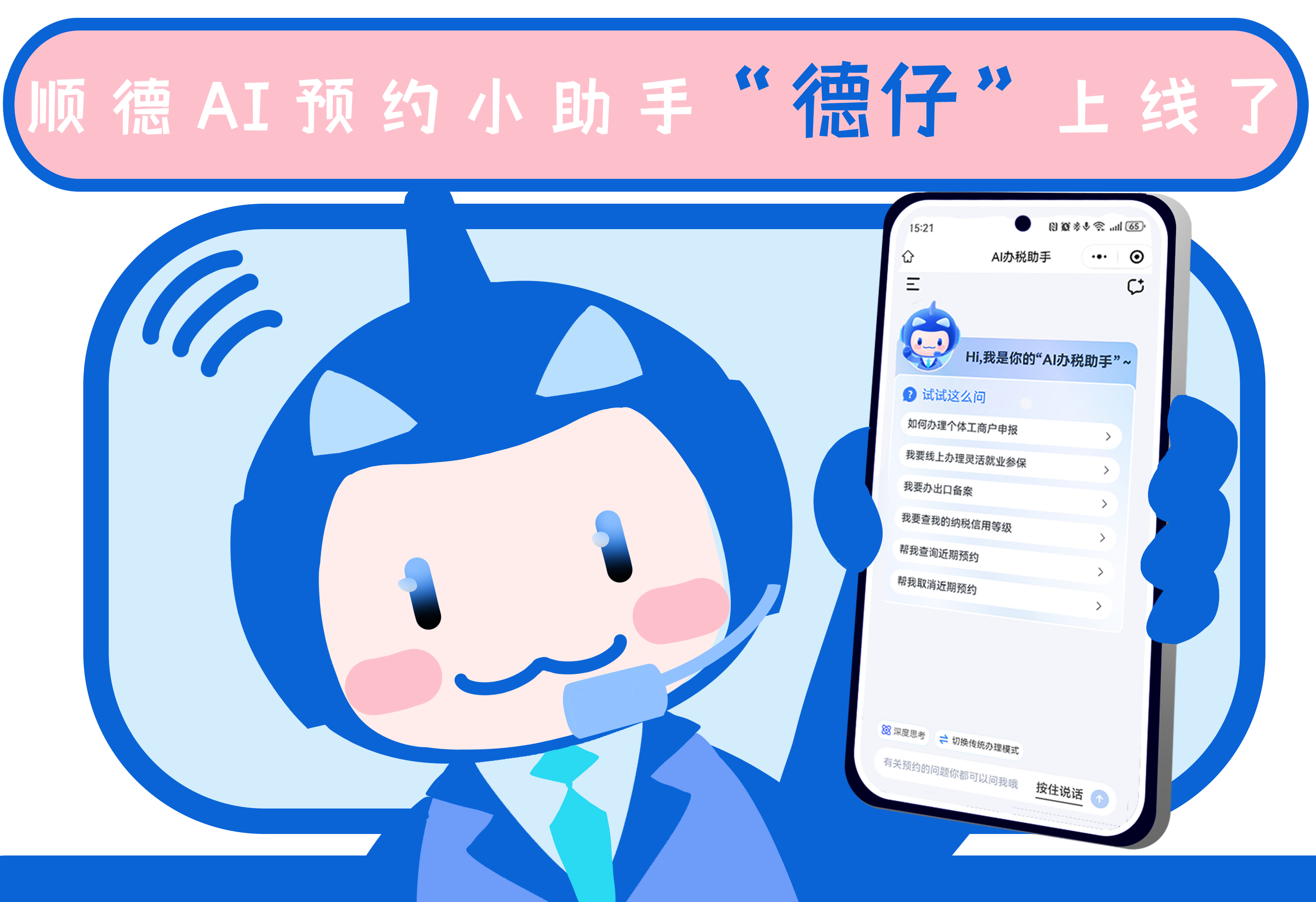 智税先锋,全市首发,方言也秒懂 佛山顺德上线AI政务预约小助手“德仔” 实现多模态预约分流导办