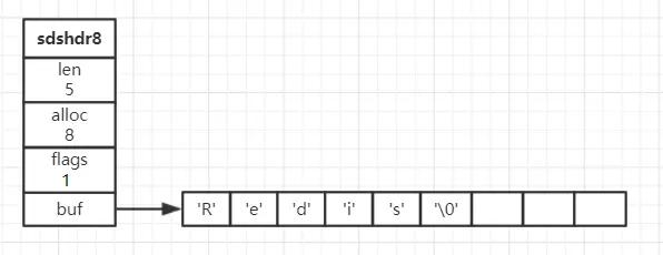 len:记录当前已使用的字节数(不包括'\0'),获取SDS长度的复杂度为O(1)alloc:记录当前字节数组总共分配的字节数量(不包括'\0')flags:标记当前字节数组的属性,是sdshdr8还是sdshdr16等,flags值的定义可以看下面代码buf:字节数组,用于保存字符串,包括结尾空白字符'\0'SDS与C字符串的区别